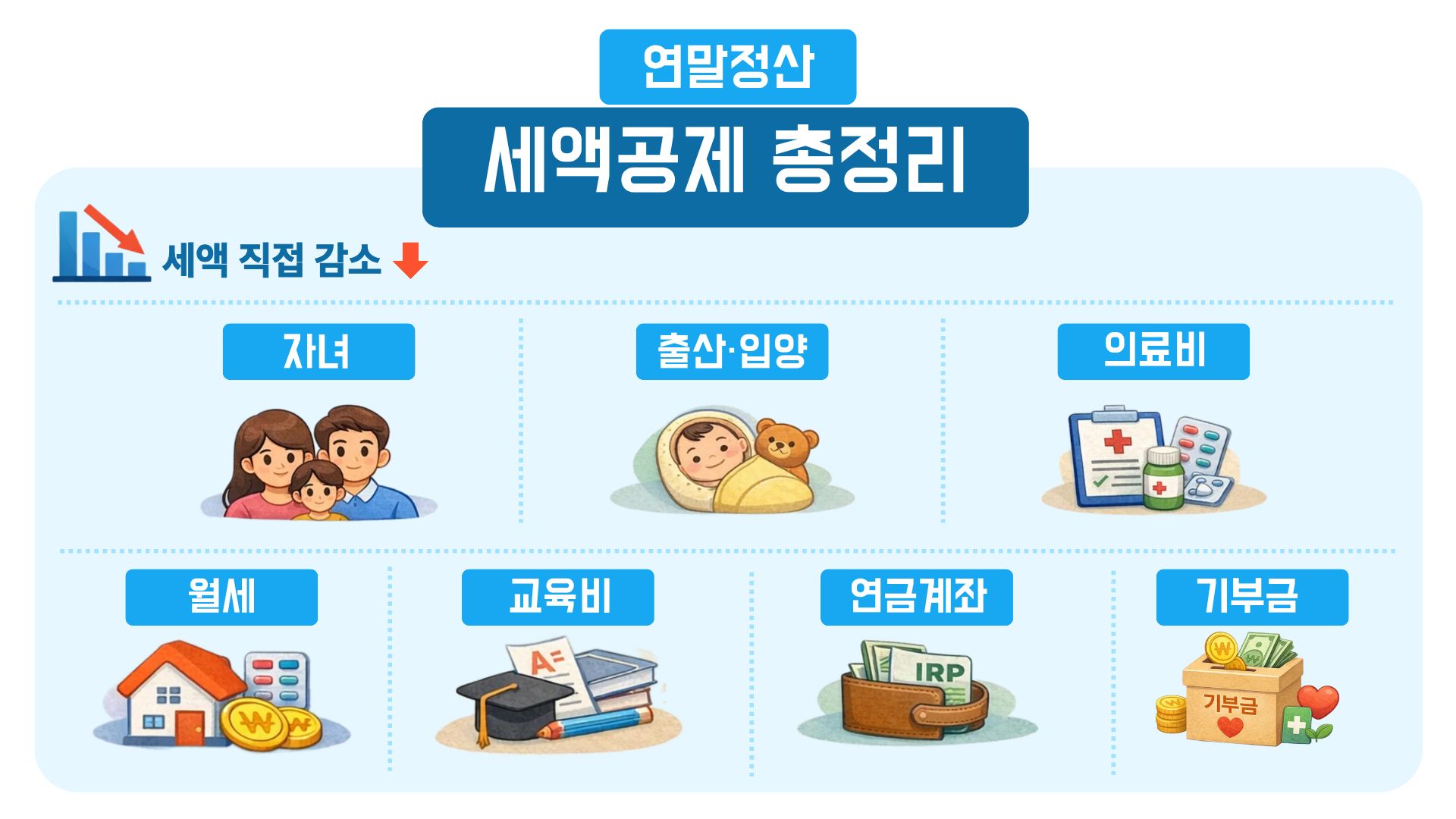 같은 금액이라도 체감 효과가 더 큰 경우가 많습니다.✔ 의료비·교육비·연금계좌·월세·자녀공제·기부금 등